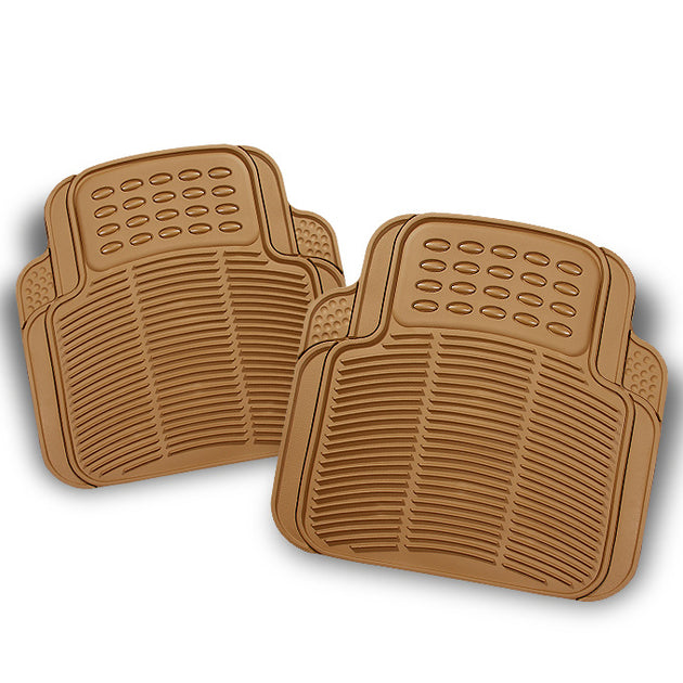 AKKON - For All Weather Heavy Duty Rubber Semi Pattern Beige Car Interior Rear Floor Mats 2 Pieces Set Liner