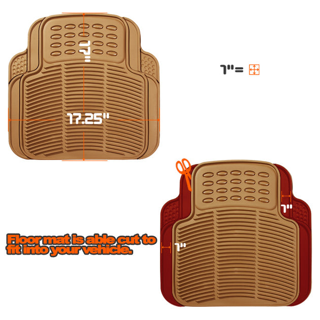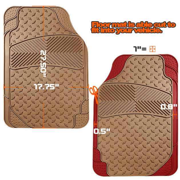 AKKON - For All Weather Heavy Duty Ver.2 Metal Style Beige Car Interior Front + Rear Floor Mats 4 Pcs Liner
