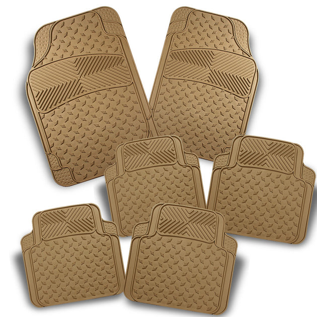 AKKON - For All Weather Heavy Duty Ver.2 Metal Style Beige Car Interior Front + Rear Floor Mats 6 Pcs Liner