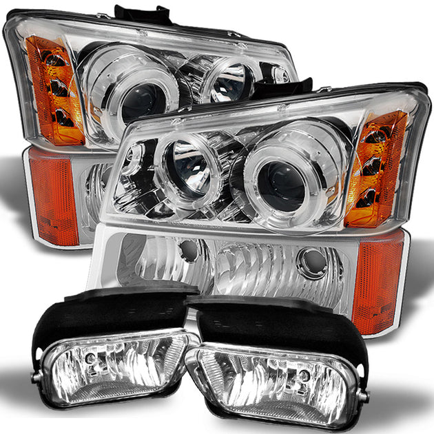 AKKON - For Avalanche Silverado 1500 2500 3500 Clear Dual Halo Projector LED Headlights+Bumper Signal+Fog Lamps