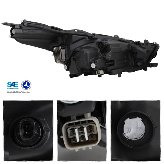 AKKON - Fits 2020-2023 Toyota Highlander XSE Projector Black Headlight Passenger Right Side w/ LED Tube DRL Running