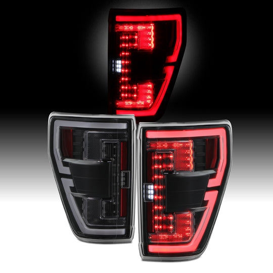 AKKON - Fits 2021-2023 Ford F150 LED DRL Brake Signal [Halogen Type] Black Tail Lights Pair w/ Blind Spot Sensor Hole