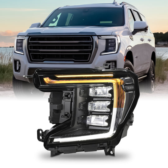 AKKON - Fits 2021-2023 GMC Yukon XL SLE | SLT Full LED Chrome Headlight w/ Switchback Running Turn Signal Driver Left