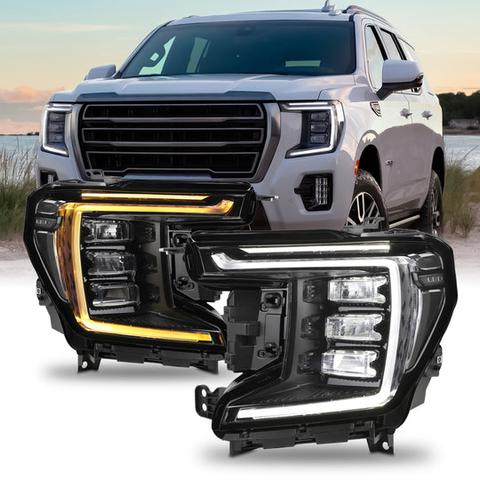 AKKON - Fits 2021-2023 GMC Yukon XL AT4 | Denali [Full LED] Black Headlights Pair Driver+Passenger w/ DRL Running Signal