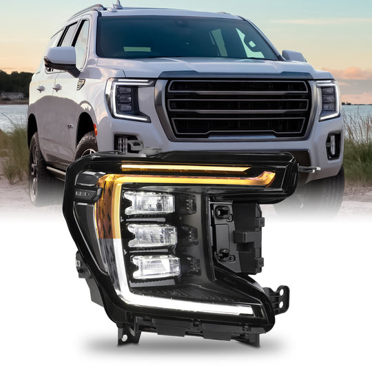 AKKON - Fits 2021-2023 GMC Yukon XL AT4 | Denali [Full LED] Black Headlight Driver Left Side w/ DRL Running Turn Signal