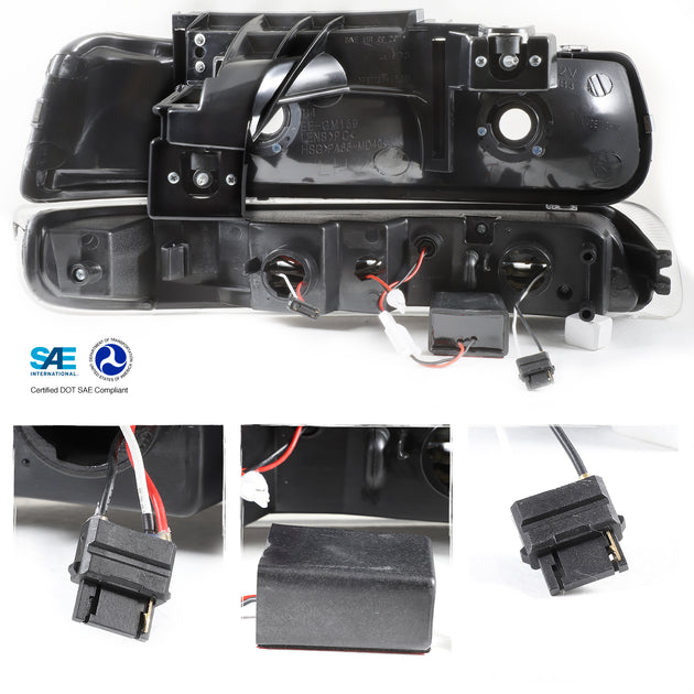 AKKON - For Black Bezel 99-06 Sierra 00-06 Yukon Headlights Replacement + Bumper Signal Light Lamps 4pcs Set