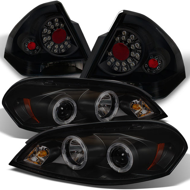 AKKON - For Black Smoked 2006-2013 Chevy Impala LED Halo Headlights + LED Tail Lights Lamps
