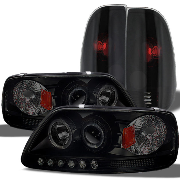 AKKON - For Black Smoked 1997-2003 Ford F150 2004 Heritage Halo {6 LED} Projector Headlights+ Tail Lights Lamp