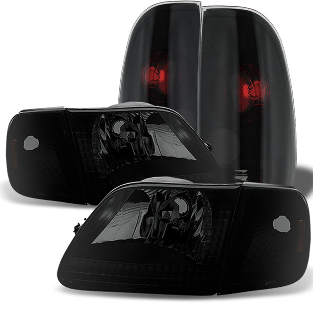 AKKON - For Black Smoked Headlight w/Corner Lamp + Tail Light For Ford F150 Heritage F250 Combo Replacement