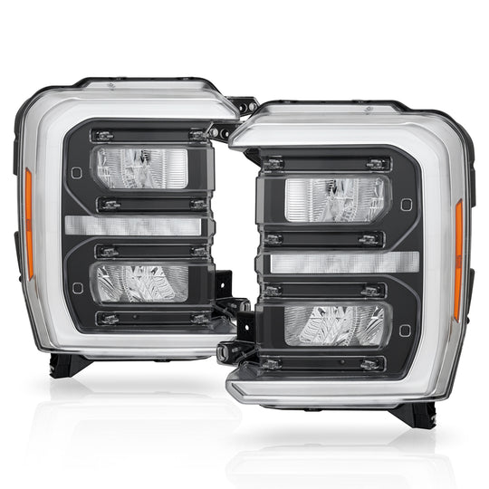 AKKON - Fits 2023-2025 Ford F250 F350 F450 SuperDuty [Halogen Type] Chrome Headlights Pair Driver Left+Passenger Right