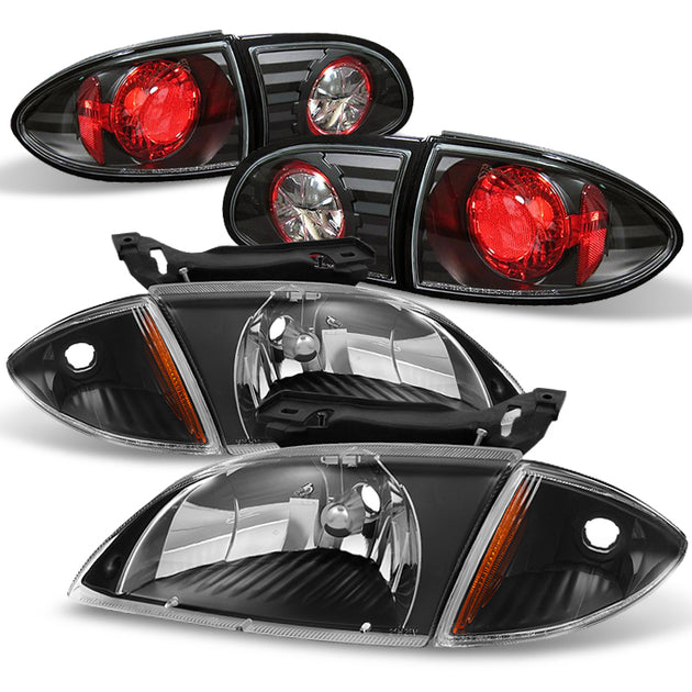 AKKON - For Chevy 00-02 Cavalier Base Z24 LS Model Black Headlights +Corner Signal +Black Tail Lights
