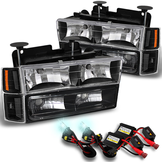 AKKON - For Chevy C/K 1500/2500/3500 Tahoe Suburban Silverado C10 Black Headlights+6000K White HID Xenon Kit