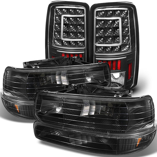 AKKON - For 00-06 Chevy Suburban 1500 2500 Tahoe Black Headlights Lamp + C Shape LED Tail light Set