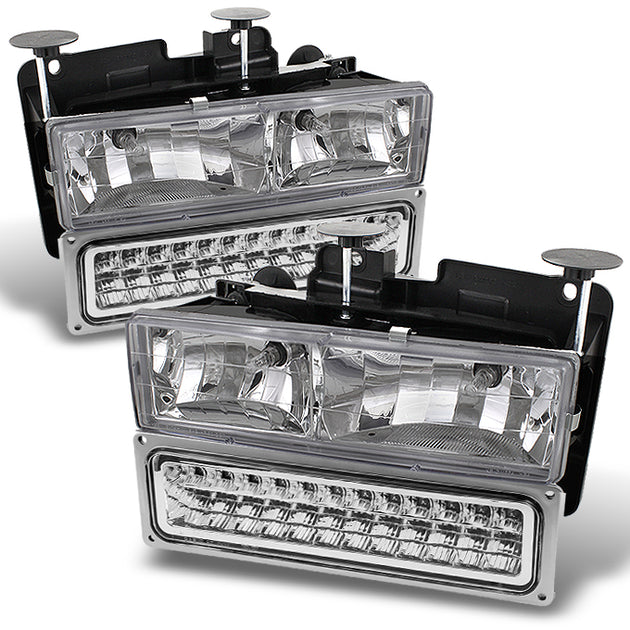 AKKON - For Chevy GMC C/K Pickup Truck Suburban Tahoe Glass Lens Headlights + LED Bumper Signal Lamps set