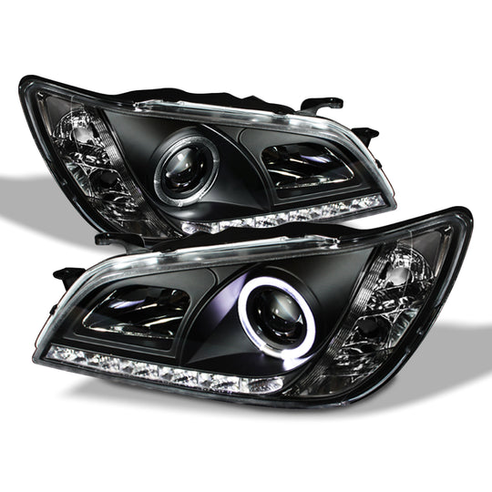 AKKON - For 01-05 Lexus Altzza IS300 Black Bezel Halo Projector DRL Daylight LED Strip Headlights Replacement Pair