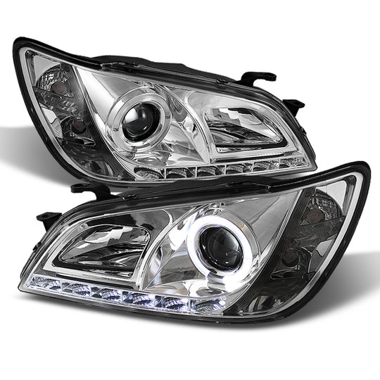 AKKON - For 01-05 Lexus Altzza IS300 Chrome Halo Projector DRL Daylight LED Strip Headlights Replacement Pair