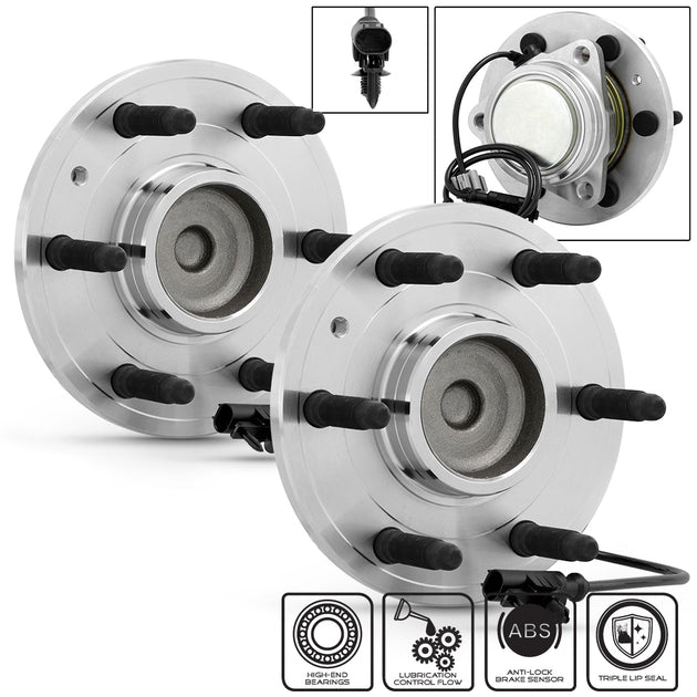 AKKON - For Chevy Silverado Avalanche Tahoe | GMC Sierra Yukon 515058 Pair of 6-Bolt Front Wheel Hub and Bearing Assembly W/ ABS