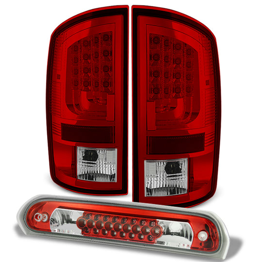 AKKON - For 02 03 04 05 06 Dodge Ram Red Lens LED Tail Light + LED 3rd High Mount Cargo Brake Lamp Combo