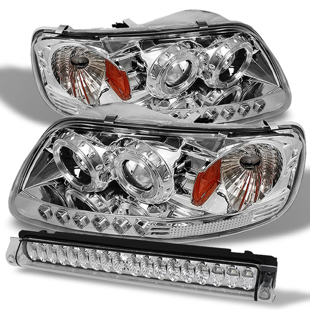 AKKON - For Chrome Ford F150 250 Clear Dual Halo Projector LED Headlights +LED 3Rd Brake Lamp Set