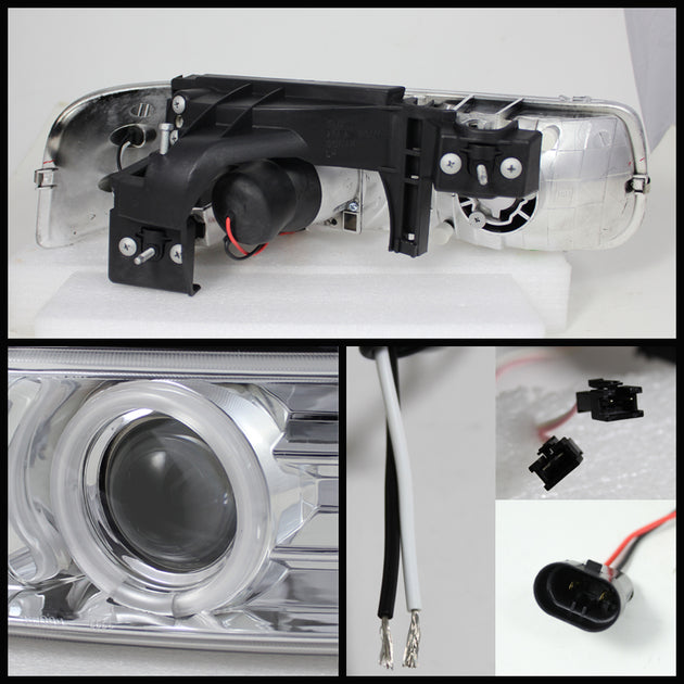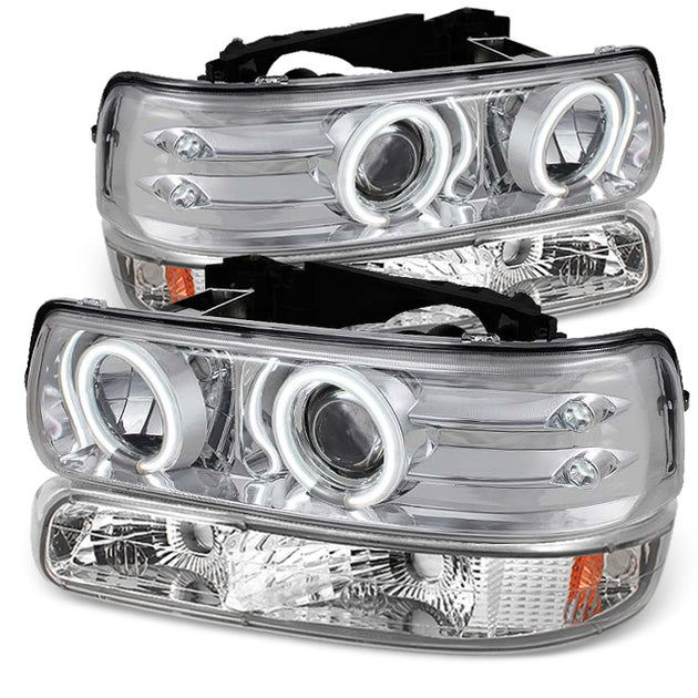 AKKON - For Chrome 99-02 Silverado | 00-06 Suburban/Tahoe | CCFL Halo Projector LED Headlight+ Bumper Signal Lights