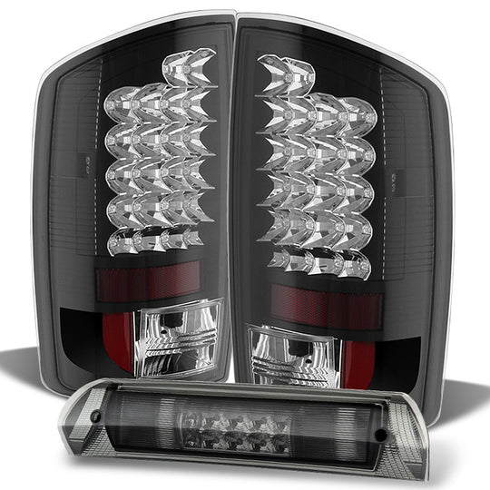 AKKON - For 02-06 Dodge Ram 1500 2500 3500 Pickup Truck Black Bezel LED Tail lights + LED 3rd Brake light Set