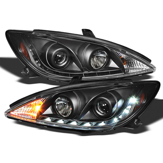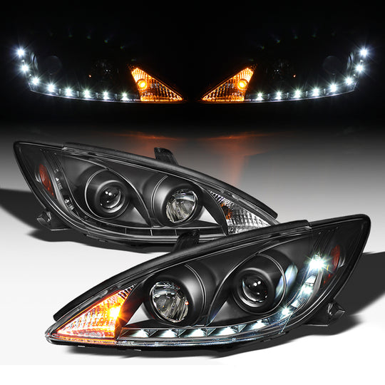 AKKON - For 02-06 Toyota Camry Black Bezel DRL Daylight LED Strip Projector Headlights Front Lamp Replacement Pair