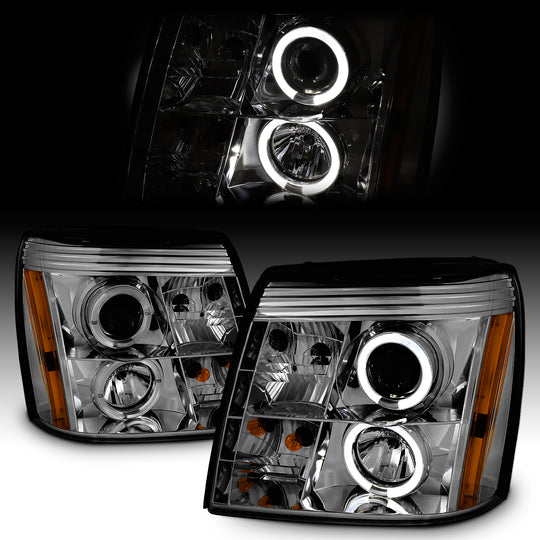 AKKON - For 03-06 Cadillac Escalade EVS EXT Smoked Smoke Halo DRL Daylight LED Strip [Factory HID Type] Projector Headlights