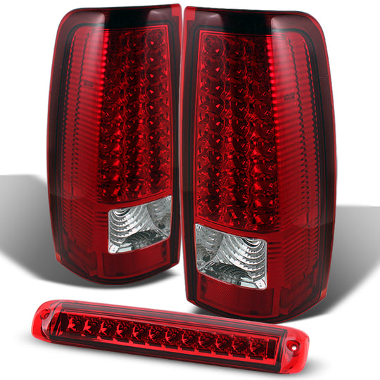 AKKON - For 03-06 Chevy Silverado 04-06 GMC Sierra Pickup Red Clear LED Tail Lights + Red LED 3rd Brake Light