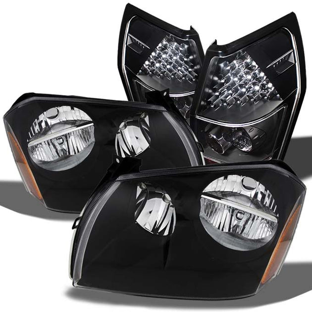 AKKON - For Dodge Magnum Black Bezel Headlights Replacement + Black LED Tail Lights Left+Right Lamps Combo