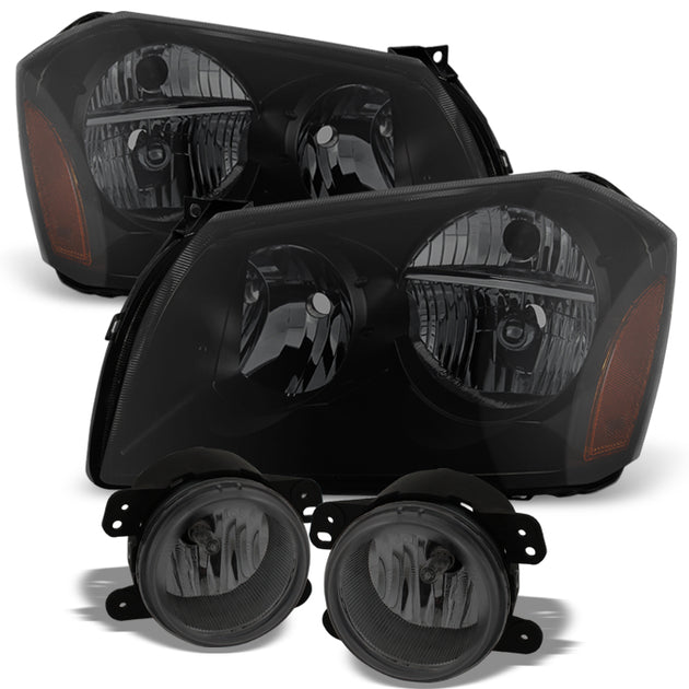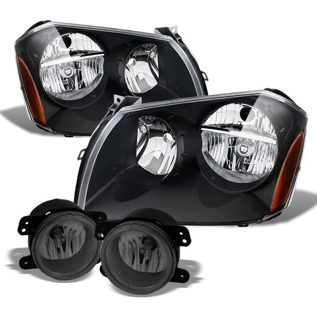 AKKON - For Dodge Magnum Black Bezel Healdights Replacement + Smoke Fog Lights w/Bulbs Left+Right Lamps Combo
