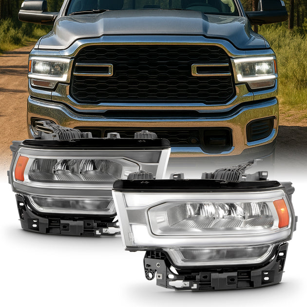 AKKON - Fit 2019 2020 2021 2022 2023 2024 Dodge Ram 2500/3500 19-24 w/Halogen Signal Chrome Bezel LED Reflector Headlight OE Style Driver - Passenger