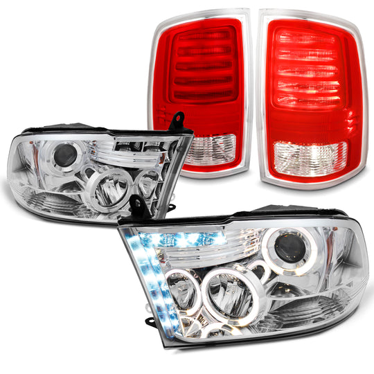 Regular price $454.99This is a 100% brand new Combo Set of Replacement Headlights with Chrome Housing + Tail Lights with Chrome Red Lens Compatible With: 2013-2018 RAM 1500 2013-2018 RAM 2500 2013-2018 RAM 3500 ATTN: Compatible w/ Dual...