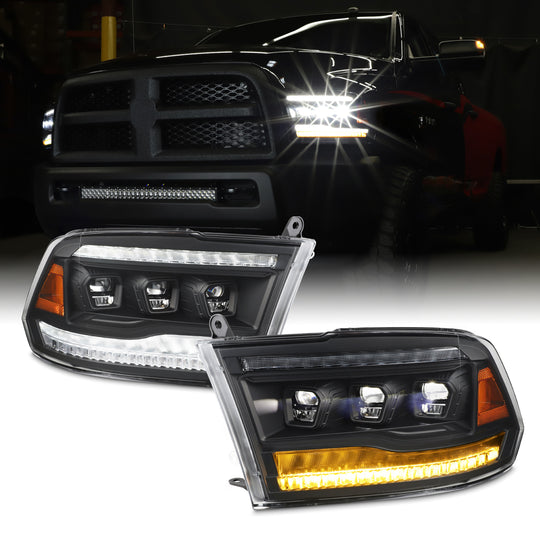 AKKON - Fit 2013-2018 Ram 1500 13-19 2500/3500 LED [Low&High Beam] DRL Sequential Signal Projector Black Headlights Pair