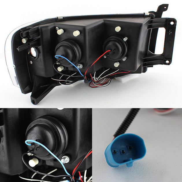 AKKON - For Dodge Ram 09-18 LED Bar DRL & Hi/Lo Projector Housing + Light Tube Black Tail Lens