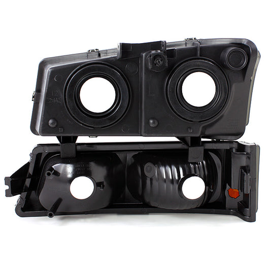 AKKON - For 03-06 Chevy Silverado Smoked Headlights Front Lamps + Bumper Signal Light + Black Smoked Tail Lights Combo