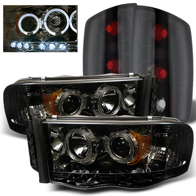 AKKON - For Dodge Ram 1500 2500 3500 Smoked Lens Halo Projector LED Headlights + Black Smoke Tail Lights Lamps
