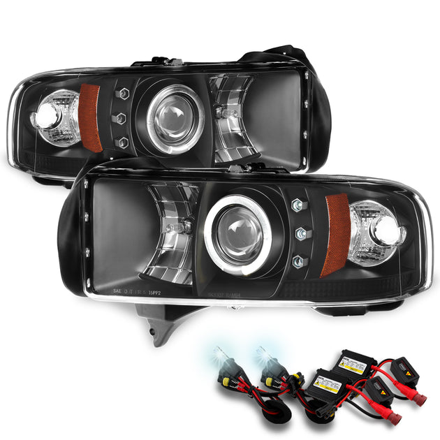 AKKON - For Dodge Ram 1500/2500/3500 Pickup Black CCFL Halo Ring LED Projector Replacement Headlights Left/Right