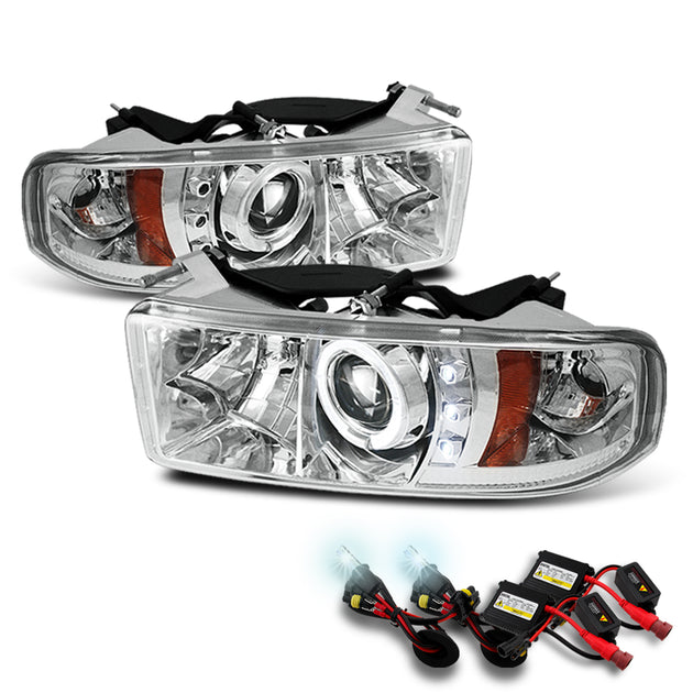 AKKON - For Dodge Ram 1500/2500/3500 Pickup Clear Dual Halo Ring LED Projector Replacement Headlights Left/Right + 6K HID