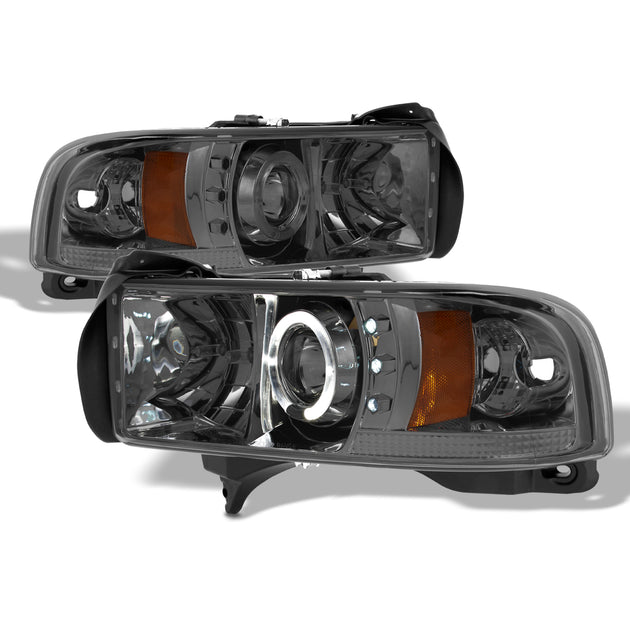 AKKON - For Dodge Ram 1500/2500/3500 Pickup Smoke CCFL Halo Ring LED Projector Replacement Headlights Left/Right