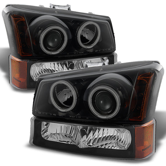 AKKON - For 03-06 Silverado 1500 2500 3500 HD Black Smoked Dual CCFL Halo Projector LED Headlight+ Bumper Lamp