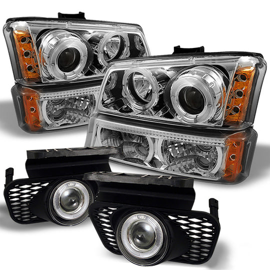AKKON - For 03-06 Silverado 1500 2500 3500 Dual Halo Projector Headlights + LED Bumper Signal + Halo Fog Lights