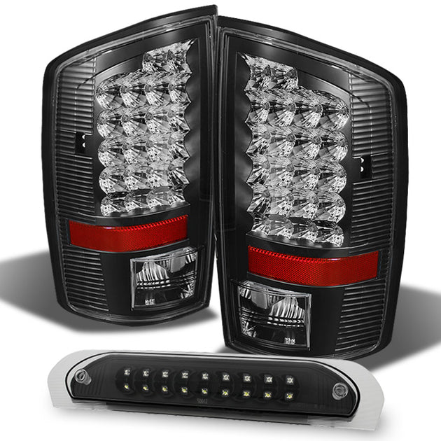 AKKON - For Dodge Ram 2002-2006 1500 | 2003-2006 2500/3500 Truck Black LED Tail Light+Black 3Rd Brake Cargo Lamps