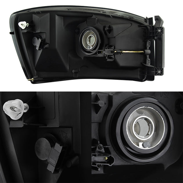 AKKON - For Dodge Ram Pickup Truck Chrome Clear Dual CCFL Halo Ring LED Projector Replacement Headlights Pair