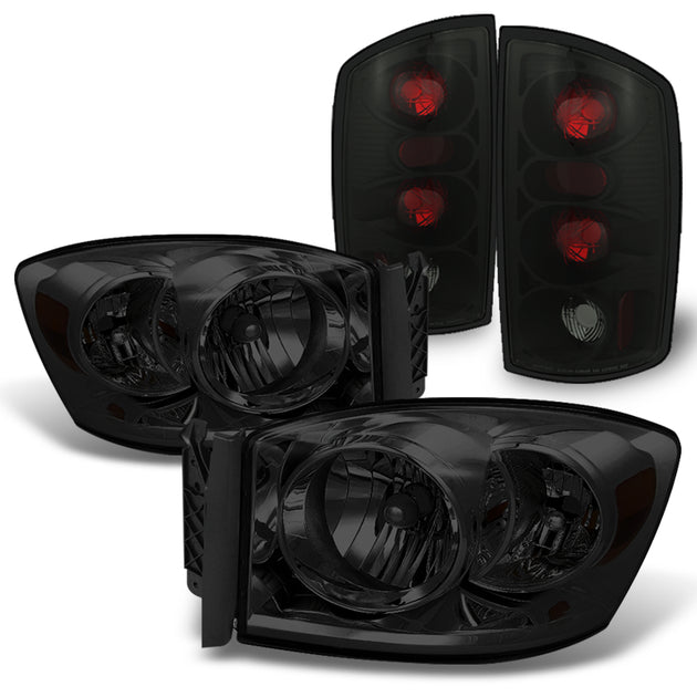 AKKON - For Dodge Ram Pickup Truck Smoked Headlights Lamps Replacement + Black Smoke Rear Tail Lights Combo
