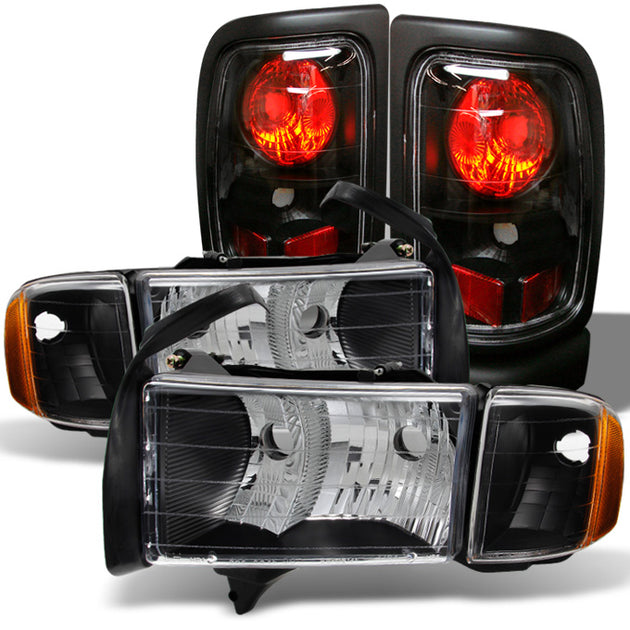 AKKON - For Dodge Ram Sport Model 99-01 1500| 99-02 2500 3500 Pickup Truck Black Headlight+Black Tail Light Lamp