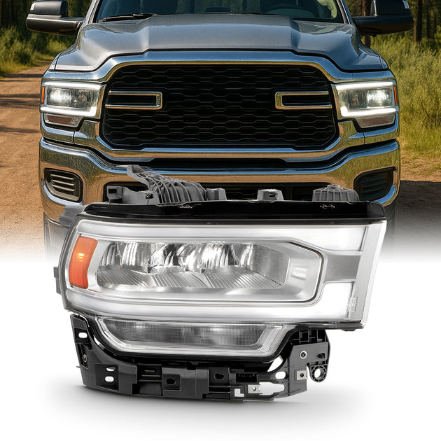 AKKON - Fit 2019 2020 2021 2022 2023 2024 Dodge Ram 2500|3500 Chrome Bezel Halogen Type Headlight Headlamp OE Style Driver - Passenger Direct Replacement