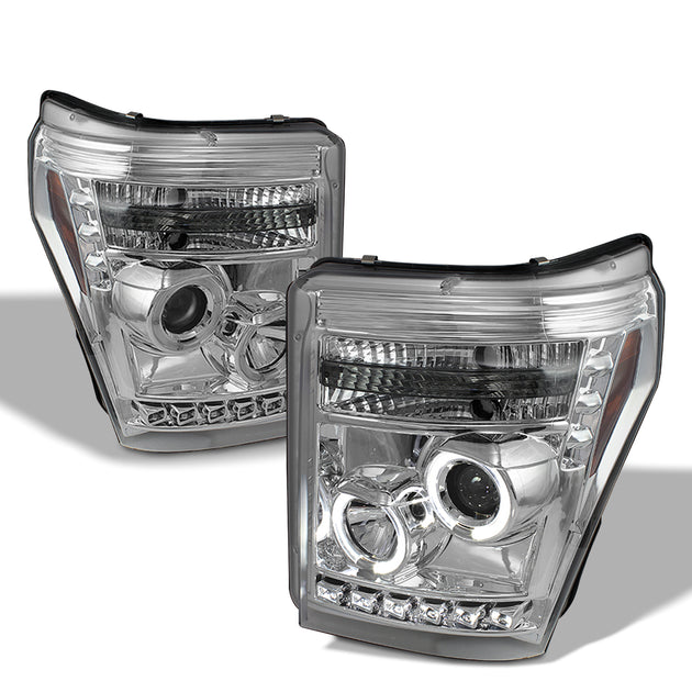 AKKON - For F-Series SuperDuty Pickup Truck Chrome Clear CCFL Halo Ring LED Projector Headlights Left + Right