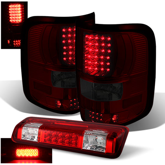 AKKON - For 04-08 Ford F150 F-150 Pickup Truck Styleside Red Smoke LED Tail Lights +Red Lens LED 3rd Brake Lamps