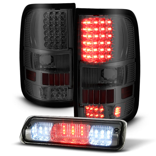 AKKON - For 04-08 Ford F150 F-150 Pickup Truck Styleside Smoke LED Tail Lights + Smoke G3 LED 3rd Brake Lamps