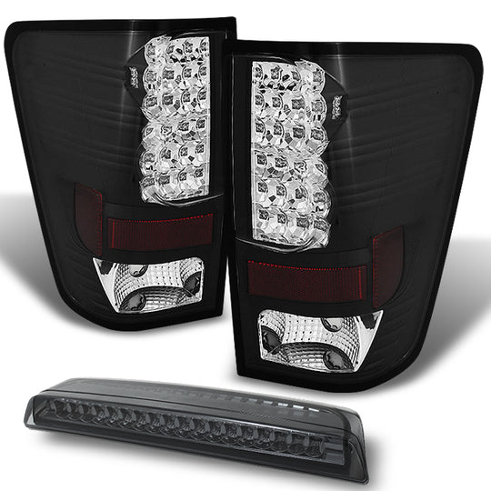 AKKON - For 04-12 Titan A60 Pickup Truck Black Tail Lights Brake Lamps Replacement + Smoked LED 3rd Brake Lights